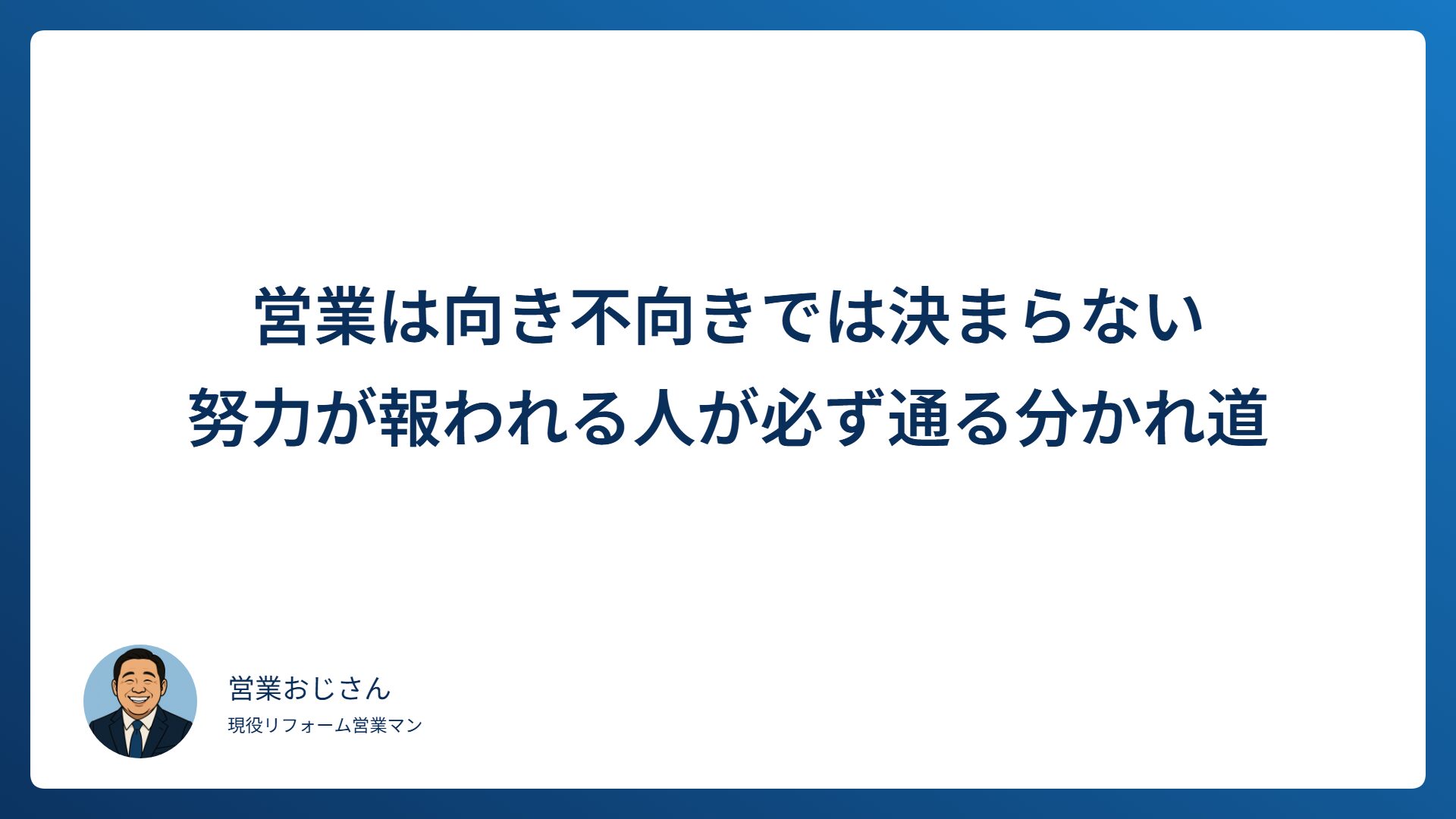 “営業おじさん”です。元採用面接官として、これまで100人以上の営業志望者と向き合ってきました。