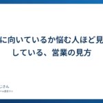 向いているかどうかで悩む前に、営業をどう見ているかを一度確認してみてください。見方が変わるだけで、悩みの質は大きく変わります。