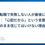 営業転職で失敗しない人が最後に頼るもの|「心配だから」という言葉をそのまま信じてはいけない理由