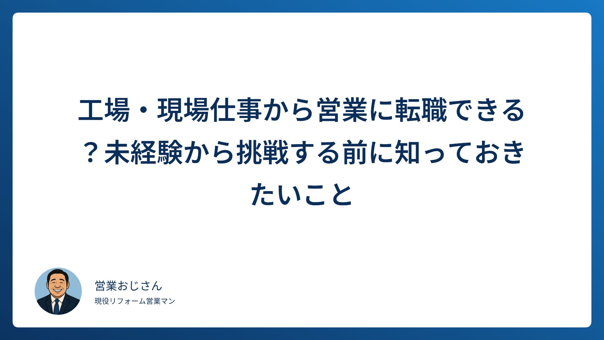本記事では、工場・現場仕事から営業に転職できるのか、未経験で挑戦する前に何を知っておくべきかを整理します。