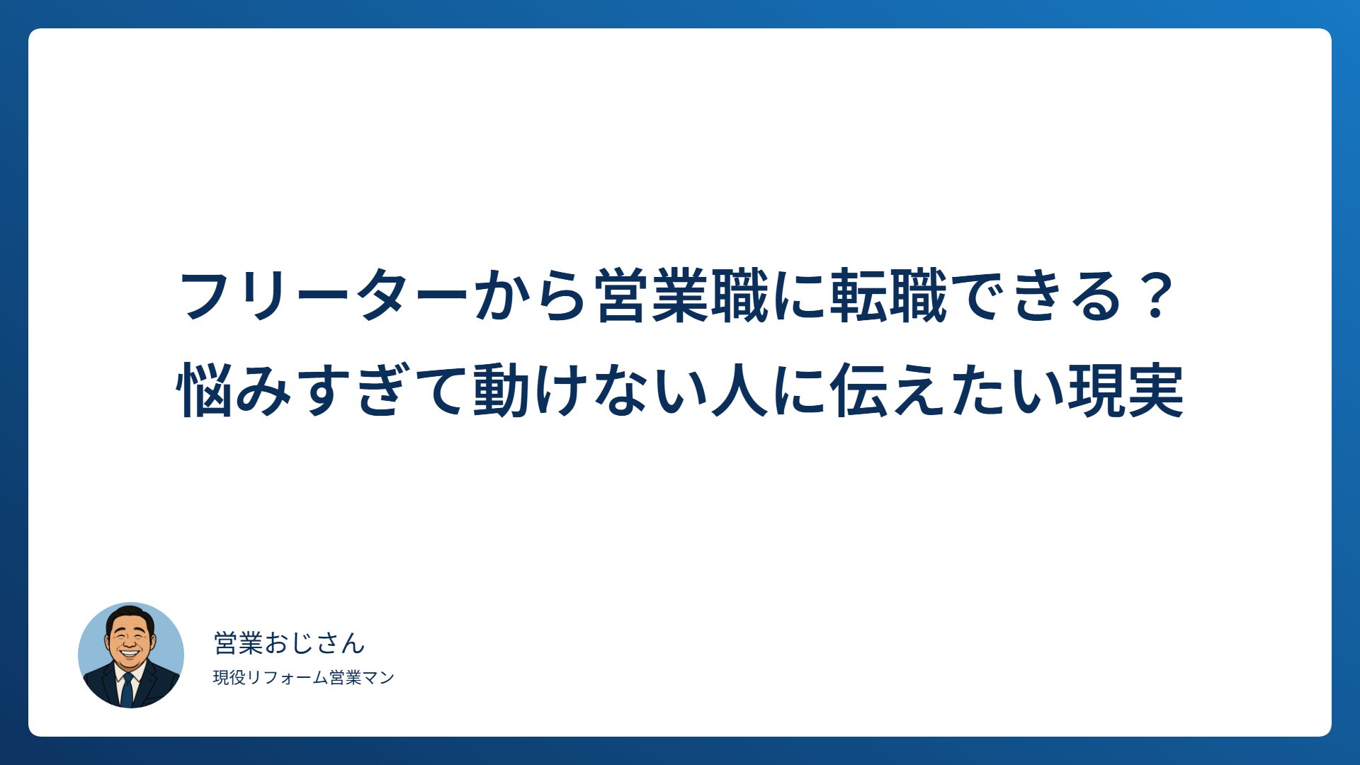 “営業おじさん”です。元採用面接官として、これまで100人以上の営業志望者と向き合ってきました。