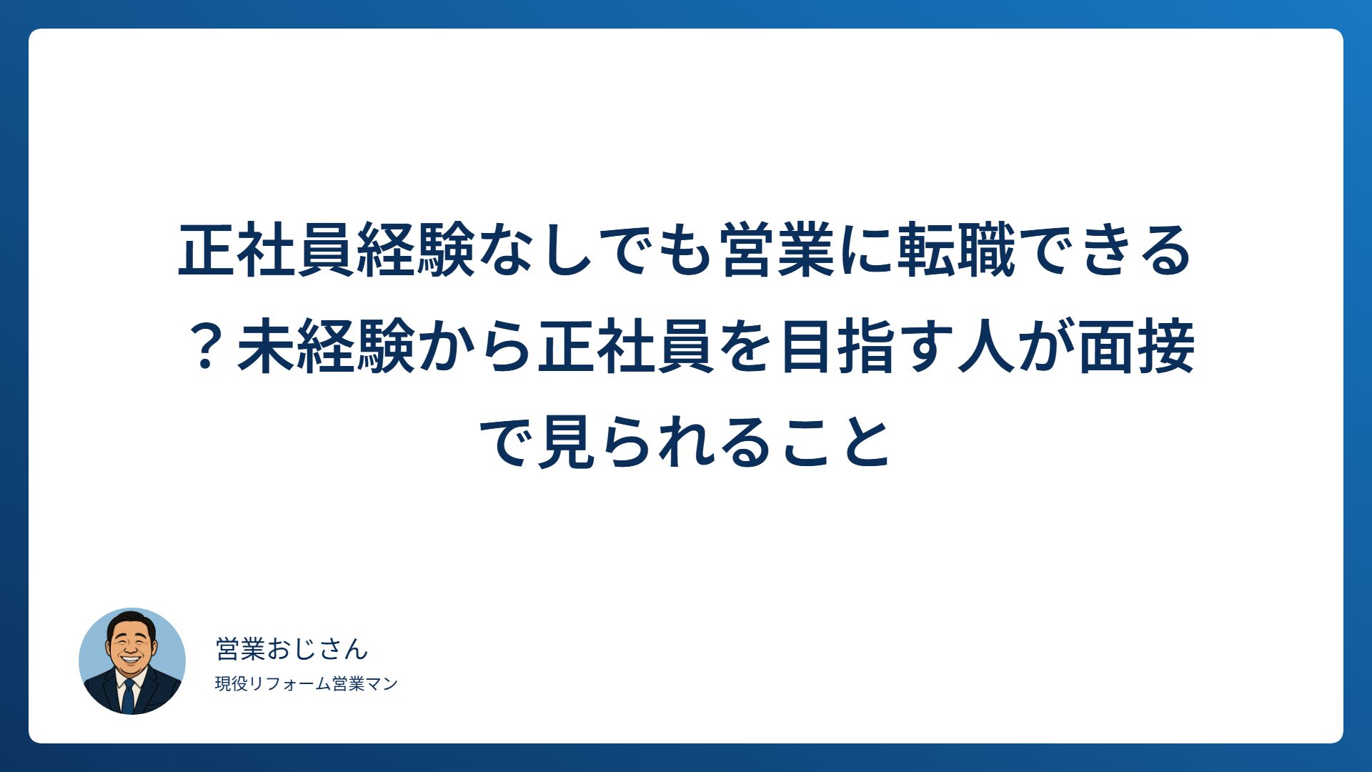 “営業おじさん”です。元採用面接官として、これまで100人以上の営業志望者と向き合ってきました。