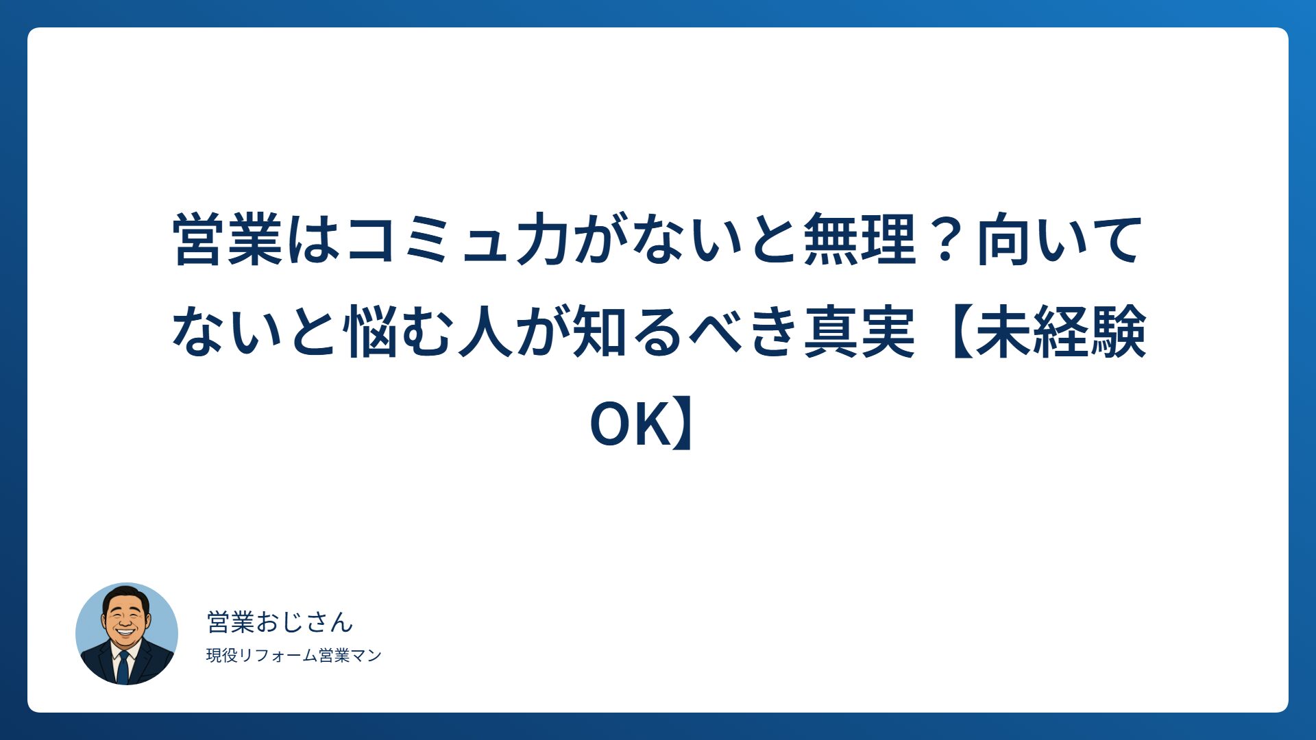“営業おじさん”です。元採用面接官として、これまで100人以上の営業志望者と向き合ってきました。